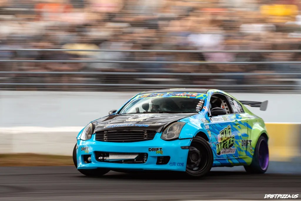 Throughout the event there was great commentary courtesy of Dave Egan from Drift Games who flew out to be the MC for the day. With some time set aside for drift games and individual call out battles. The format of the event made for a great day on the track, and the crowd in the stands for sure confirmed that drifting was alive and well from a spectator interest level.